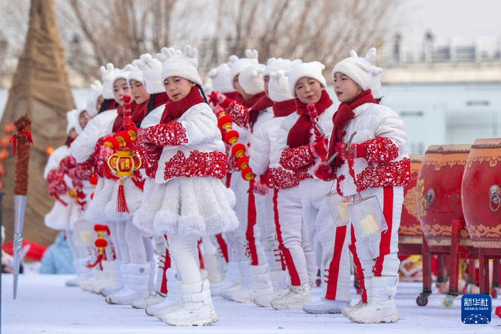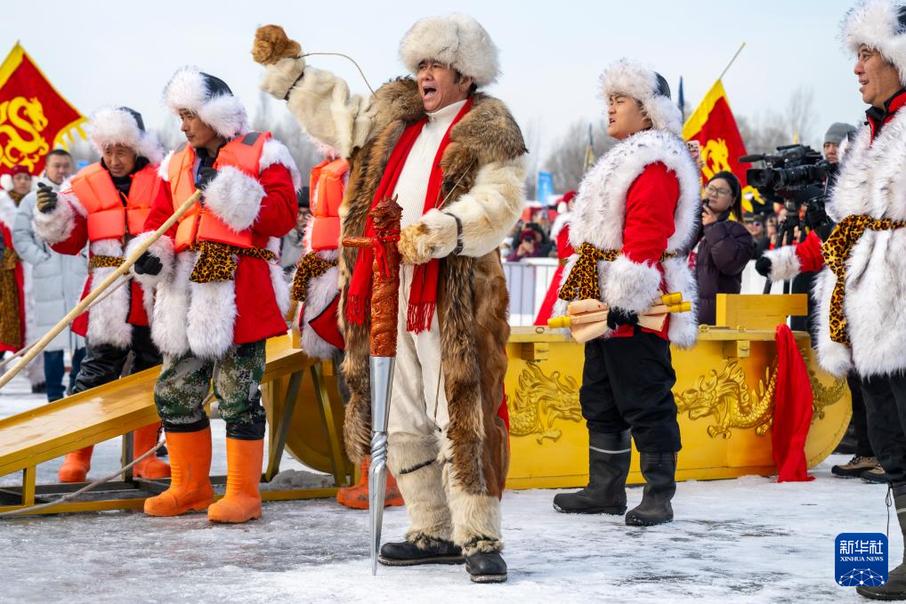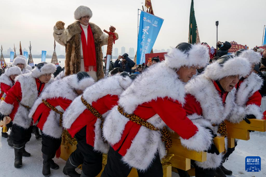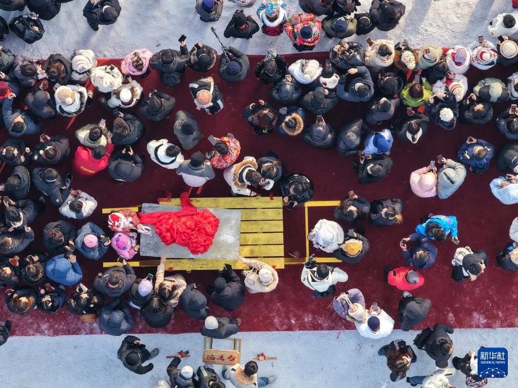 这是12月7日拍摄的第六届哈尔滨采冰节现场的民俗表演。新华社记者 王松 摄