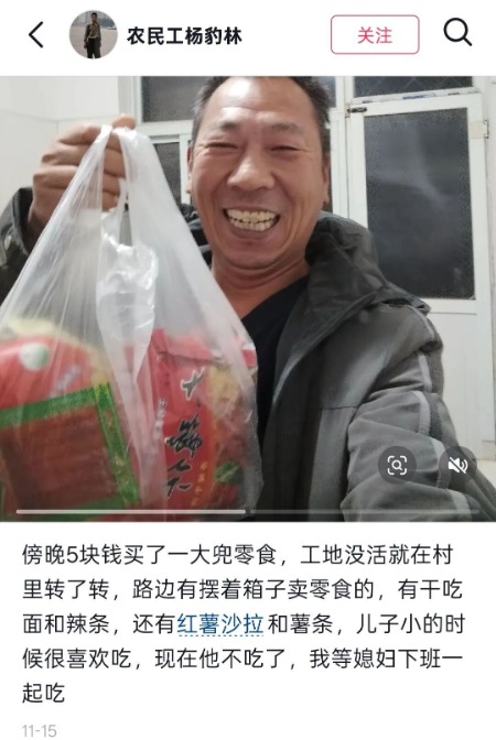 ——这是“农民工杨豹林”账号最新发布的动态内容。