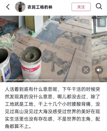 简单的文字,道尽了这个农民工账号开设并分享内容的初衷。