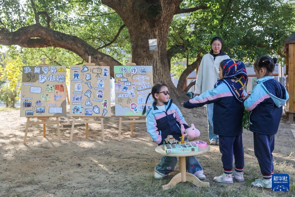 12月9日,诸暨市暨南街道中心学校三江幼儿园的老师给孩子们普及反诈防骗知识。新华社记者 徐昱 摄