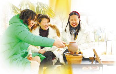 河南栾川县,游客在畔山民宿围炉煮茶。人民日报记者 朱佩娴摄
