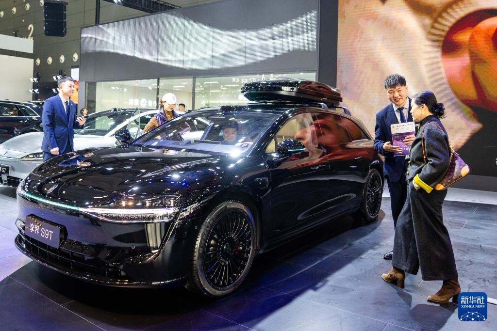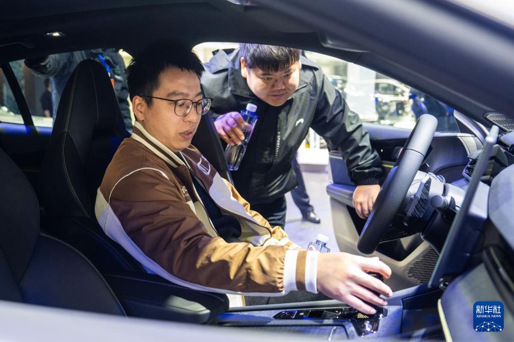 12月10日,观众(右一)在了解参展车辆。新华社记者 陈思汗 摄