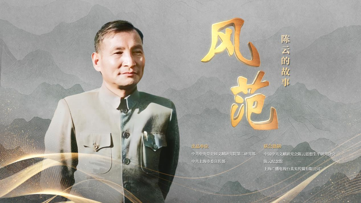 据悉,六集文献纪录片《风范:陈云的故事》由中共中央党史和文献研究院第二研究部、中共上海市委宣传部出品,中国中共文献研究会陈云思想生平研究分会、陈云纪念馆、上海广播电视台真实传媒有限公司联合摄制。