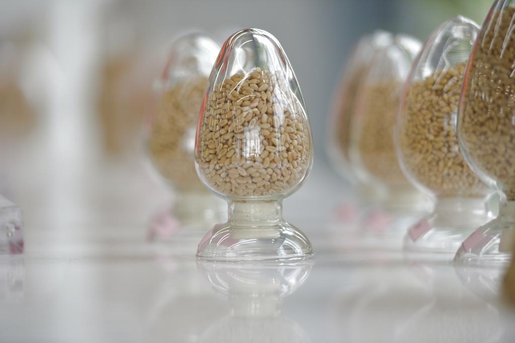 这是2024年5月31日在位于河南新乡的中原农谷国家生物育种产业创新中心神农种业实验室拍摄的种子样本。新华社记者 刘力航 摄