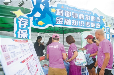 在嘉年华现场,参赛选手领取金融知识宣传材料。本组图片均由特约记者 蒙钟德 摄