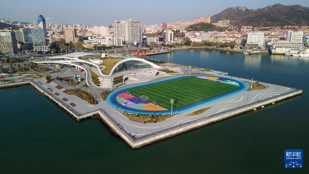这是12月9日拍摄的威海至海港湾球场(无人机照片)。新华社记者 徐速绘 摄
