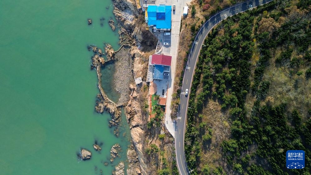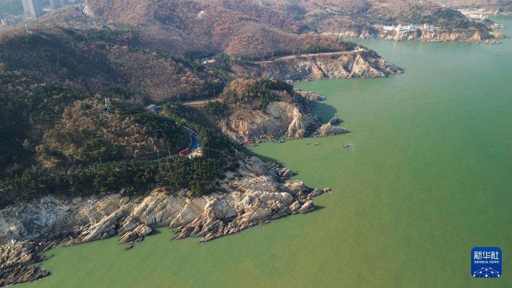 12月9日,车辆在威海市沿海岸线的自驾旅游公路上行驶(无人机照片)。新华社记者 徐速绘 摄