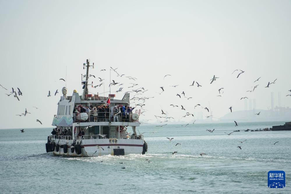 12月10日,游客在威海市乘坐海上游船。新华社记者 徐速绘 摄