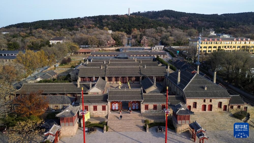 这是12月10日拍摄的威海刘公岛上的海军公所历史遗存(无人机照片)。新华社记者 徐速绘 摄