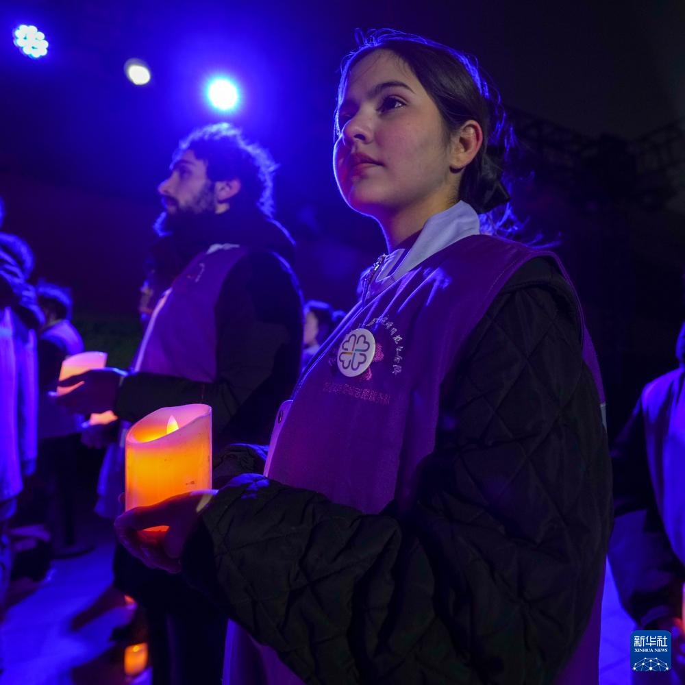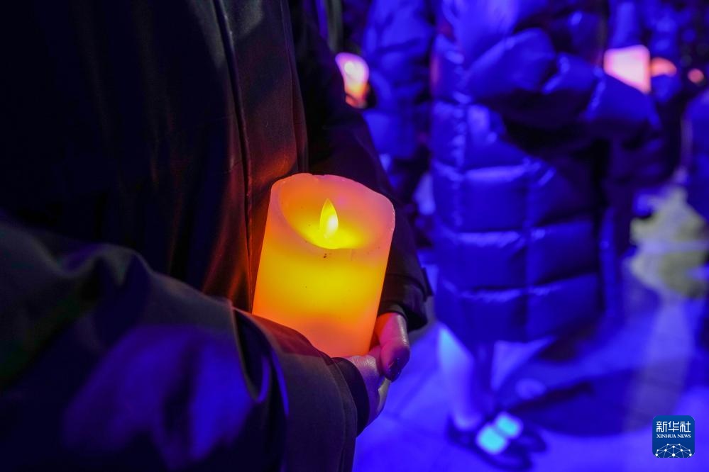 12月13日,参加活动者手捧烛光灯,祈愿和平。新华社记者 李博 摄