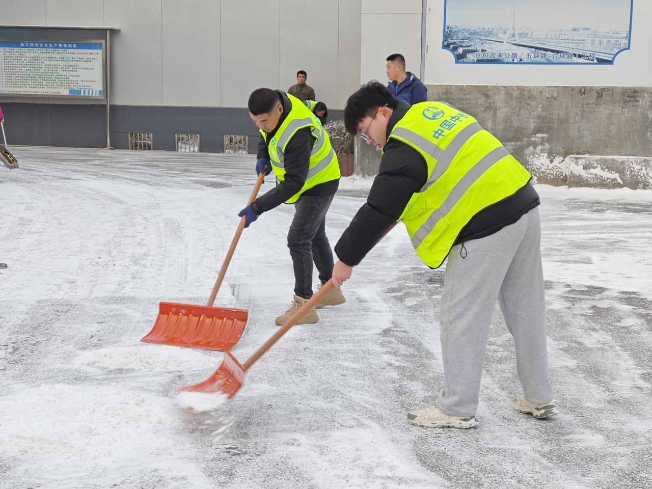 项目部党员突击队与青年志愿者服务队遵循“先重点后全面”的原则,着重对村道弯道、坡道、人行道等易滑路段进行彻底清扫,全力保障村民出行安全。在白雪覆盖的路面上,职工们身着的绿色反光背心格外显眼,成为冬日里一道温暖人心的风景线。