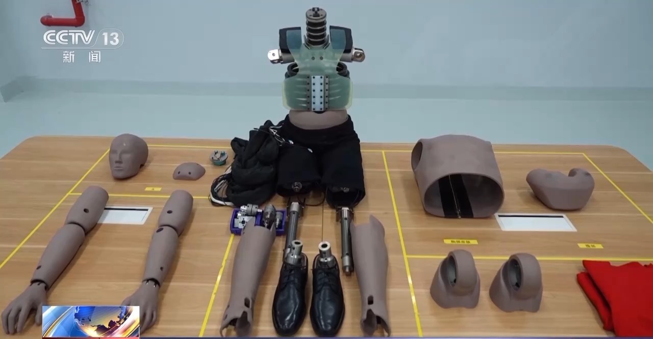 这个假人分拆台展示了假人所有的部件,从大腿、躯干,到头部,这些部件均已实现了完全自主设计与制造。