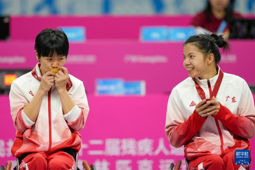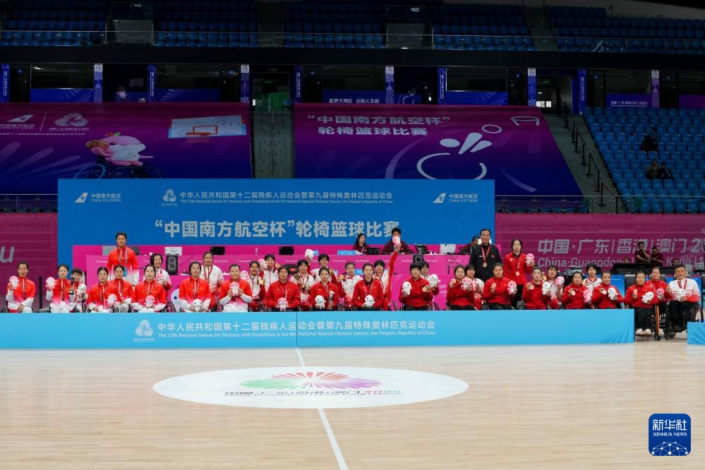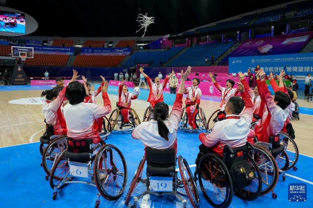 12月14日,在广州举行的全国第十二届残疾人运动会暨第九届特殊奥林匹克运动会轮椅篮球项目女子组金牌赛中,广东一团队66比27战胜北京队,夺得冠军。