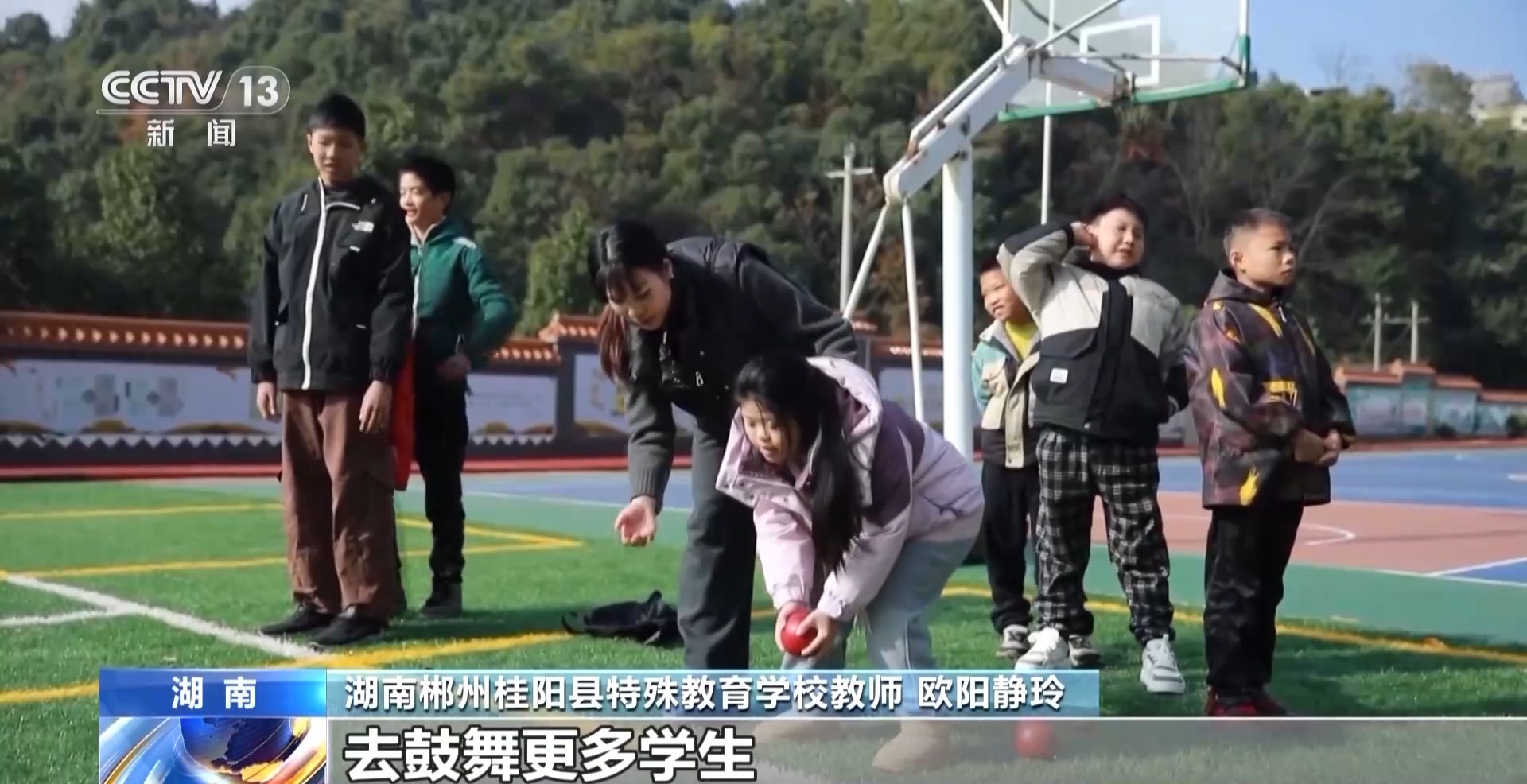 结束残特奥会征程,欧阳静玲回到了熟悉的学校操场。作为湖南郴州桂阳县特殊教育学校的体育老师,她的工作就是带着这里的孩子们体育锻炼、康复健身。