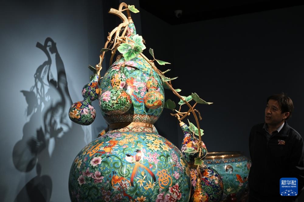 12月15日,观众参观展出的景泰蓝作品《福禄万代》。新华社记者 金良快 摄