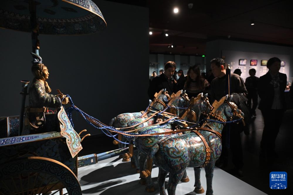 12月15日,观众参观展出的景泰蓝作品《兵马战车》。新华社记者 金良快 摄