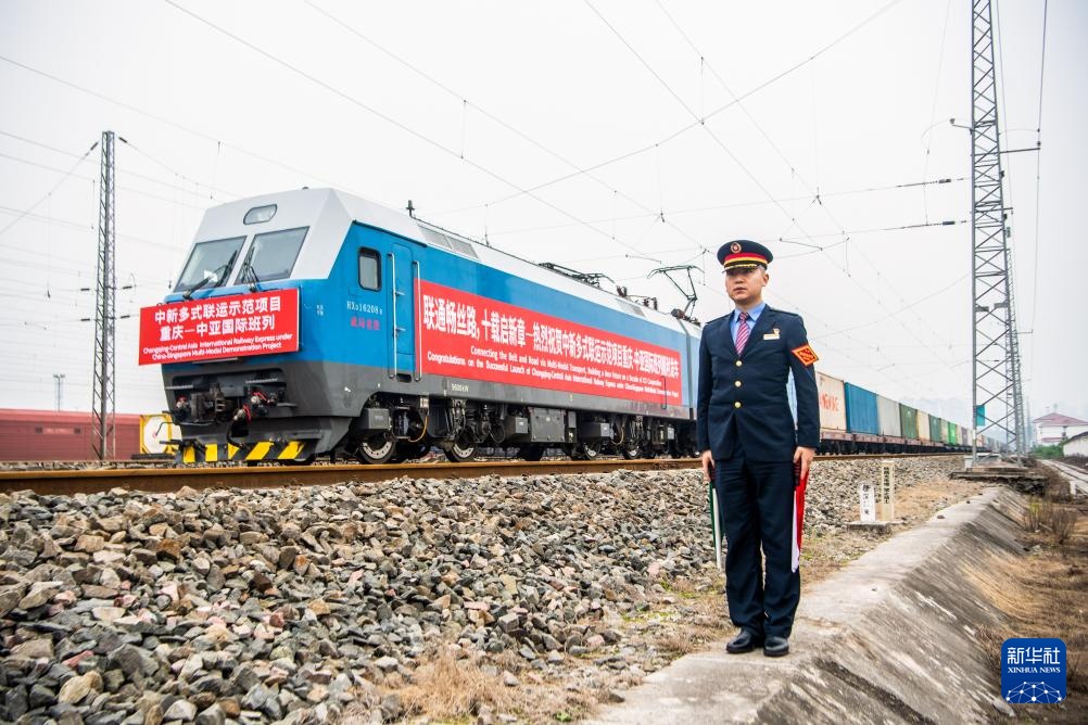 12月15日,一列装载化工产品、摩托车零配件等货物的中新多式联运示范项目重庆—东南亚班列缓缓驶出重庆鱼嘴站,将向南经广西钦州以铁海联运方式发往新加坡。与此同时,另一条轨道上,一列装载汽车KD件的中新多式联运示范项目重庆—中亚国际班列同步发车,将向西经阿拉山口以国际铁路联运方式发往哈萨克斯坦。