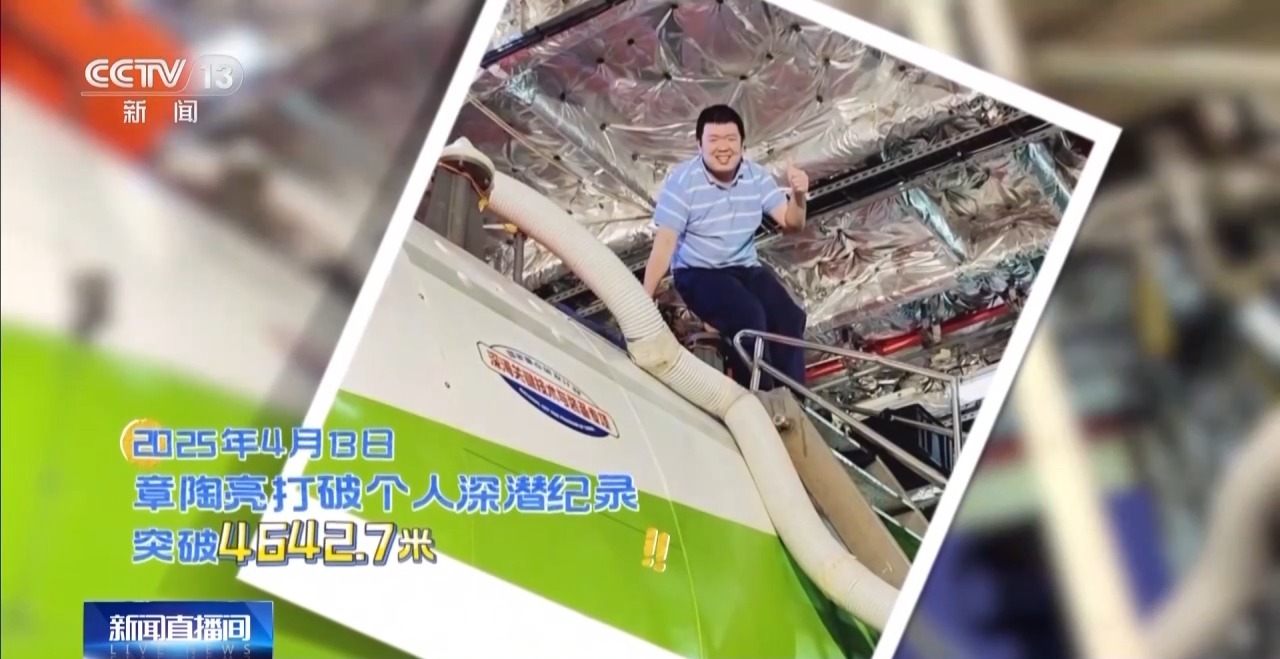 2024年7月24日,章陶亮在中国南海实现了自己首次深潜,最大下潜深度为1519.8米。