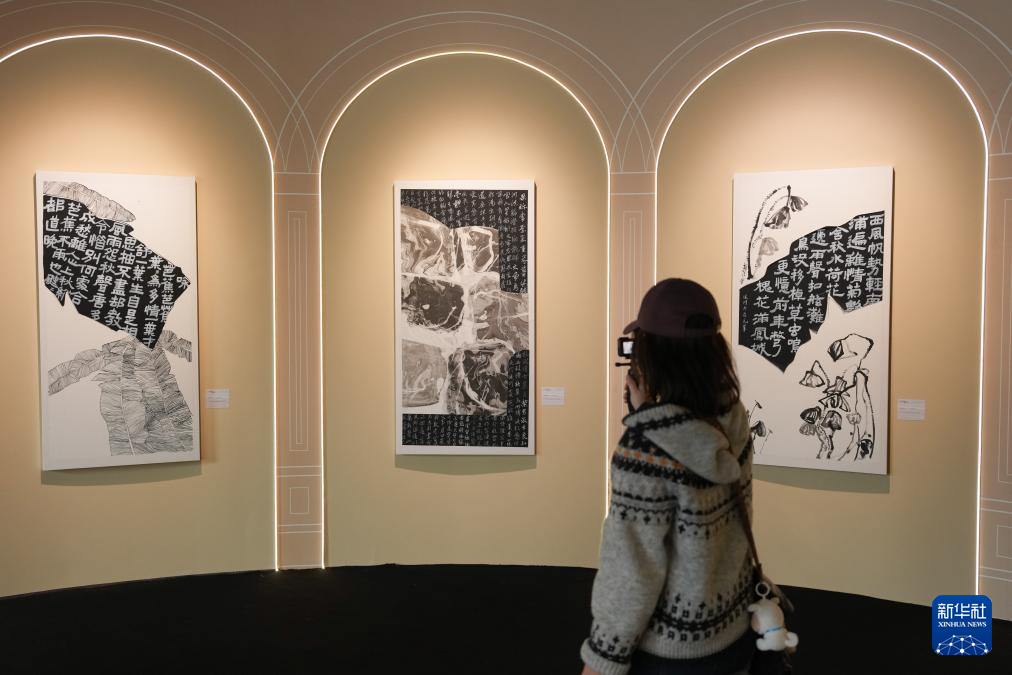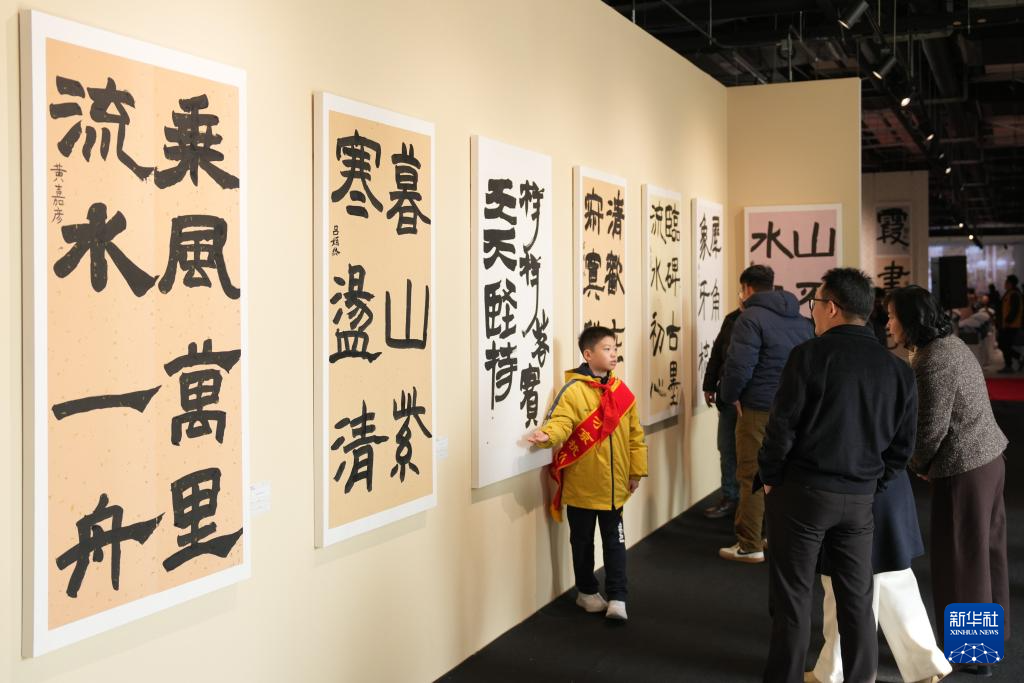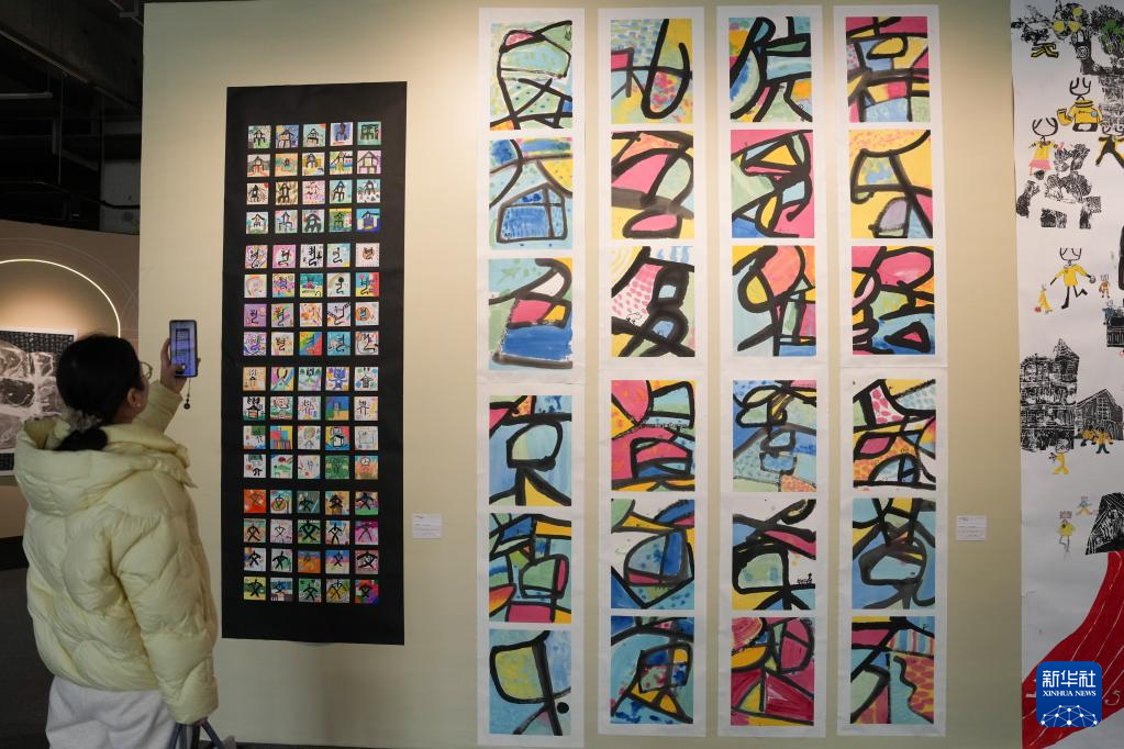 12月19日,观众观看小学生“画文解字”系列书法作品。新华社记者 黄宗治 摄