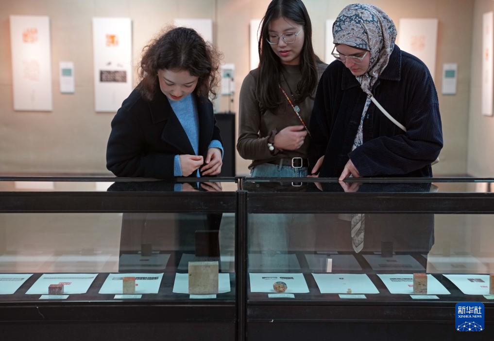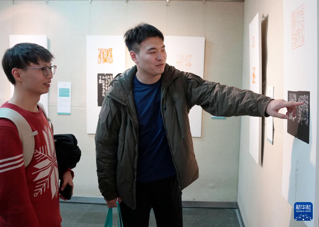 12月19日,在篆刻工作坊,参展学生进行篆刻展示。新华社记者 刘颖 摄