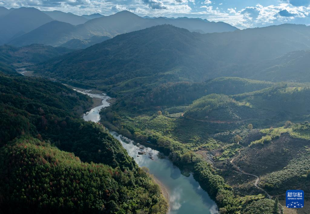 这是12月20日拍摄的福建省永泰县嵩口镇梧埕村大樟溪(无人机照片)。新华社记者 魏培全 摄