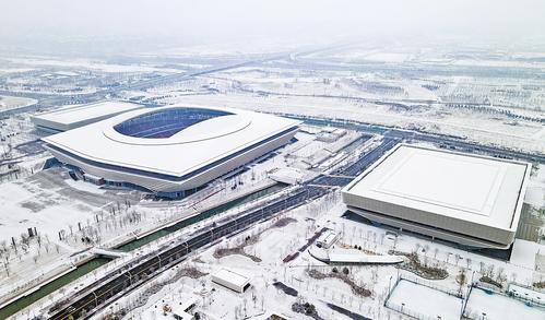 12月13日,雪后的雄安体育中心。河北日报记者 刘光昱摄