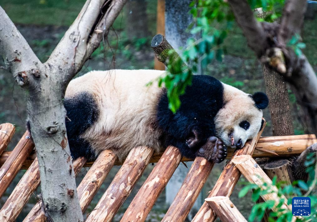 12月22日,入住的大熊猫在适应新环境。新华社记者 唐奕 摄