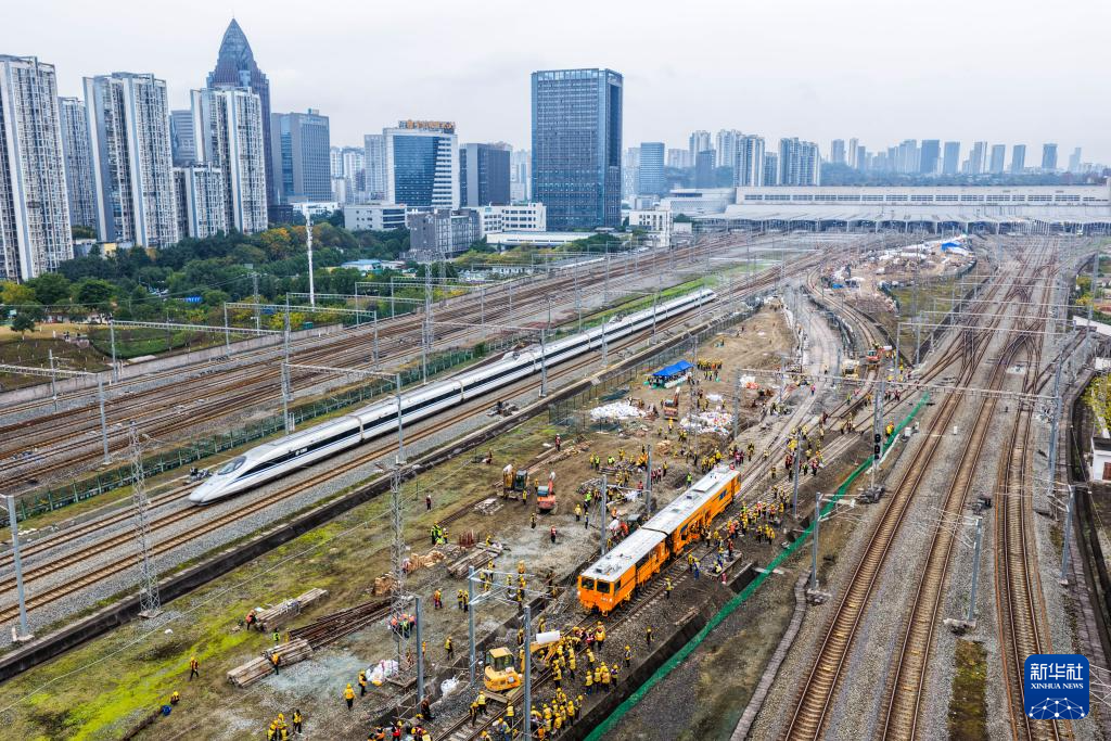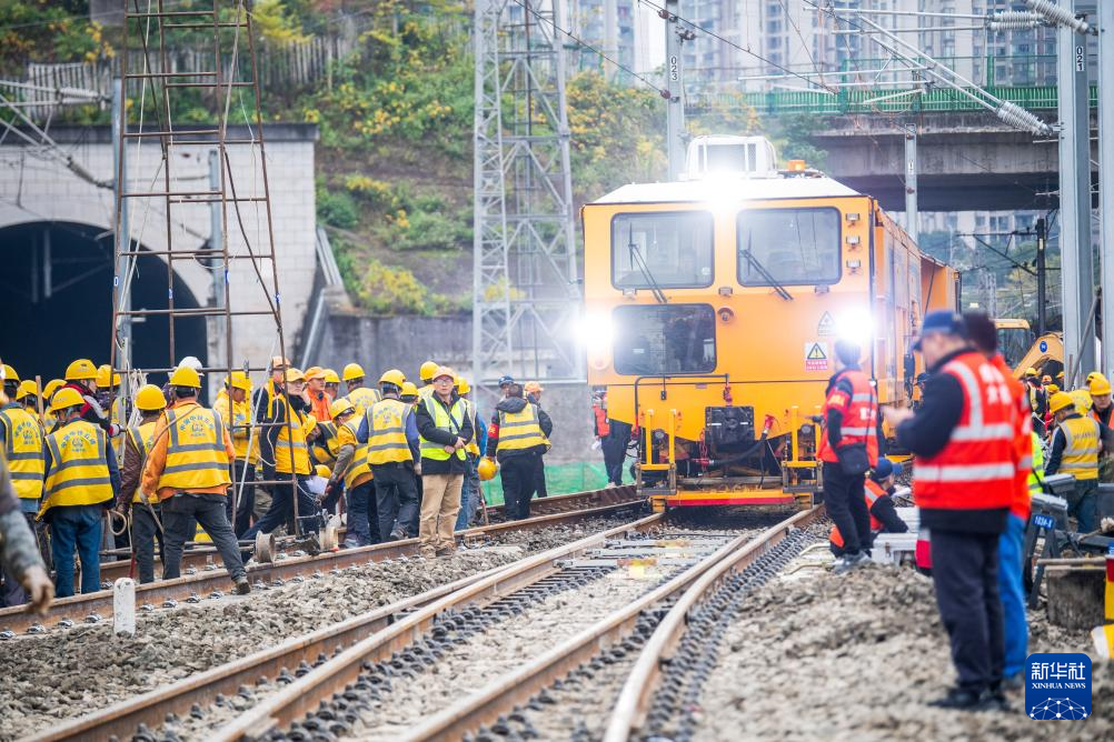 12月23日凌晨,成渝中线高铁引入重庆北站工程第二阶段站改I级施工顺利完成。此次施工作业任务由来自中铁五局、重庆工电段、成都工务大机段、成都电务维修段等多家单位的1200余名施工人员经过1050分钟完成。成渝中线高铁是我国“八纵八横”高铁网沿江通道的重要组成部分,正线全长292公里,设计时速350公里。