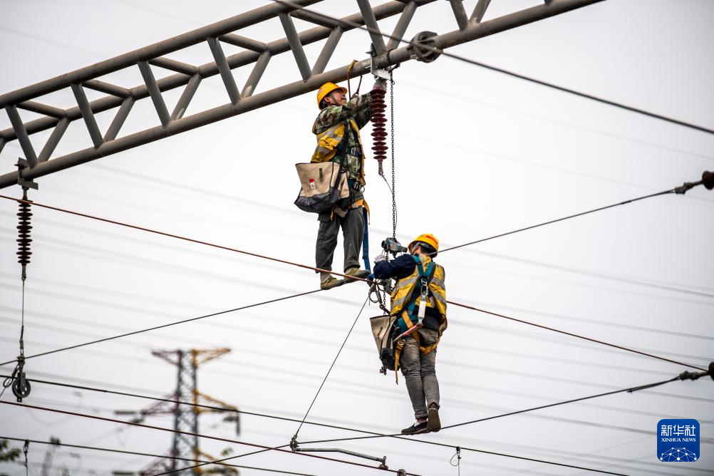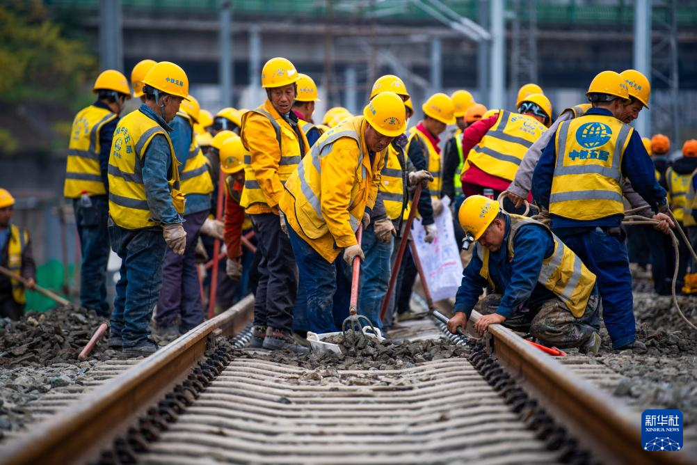 12月22日,工人在成渝中线高铁引入重庆北站工程施工现场作业。新华社记者 唐奕 摄
