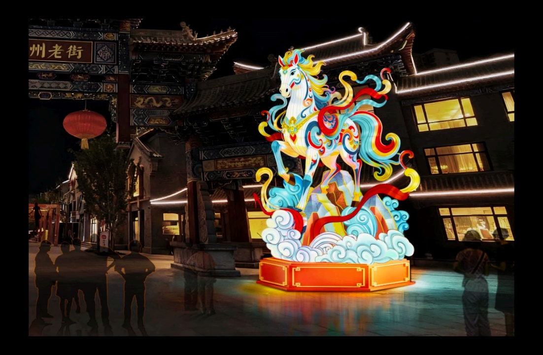 本次盛典精心策划了三大核心板块,将传统民俗底蕴与当代消费体验深度融合。其中,“星河入梦 陇原灯画”主题灯展作为视觉重头戏,创新采用“传统非遗+现代科技”双轨呈现。由自贡非遗匠人亲手打造的“祥龙瑞跃”等四大传统主题灯组,生动演绎中华祥瑞文化与丝路风情;在街区外围,现代光影技术则将张掖丹霞、黄河波澜等甘肃壮美风光循环映现于灯阵之上,形成一道如梦似幻的流动“护城星河”。亮灯仪式将于12月24日晚举行。