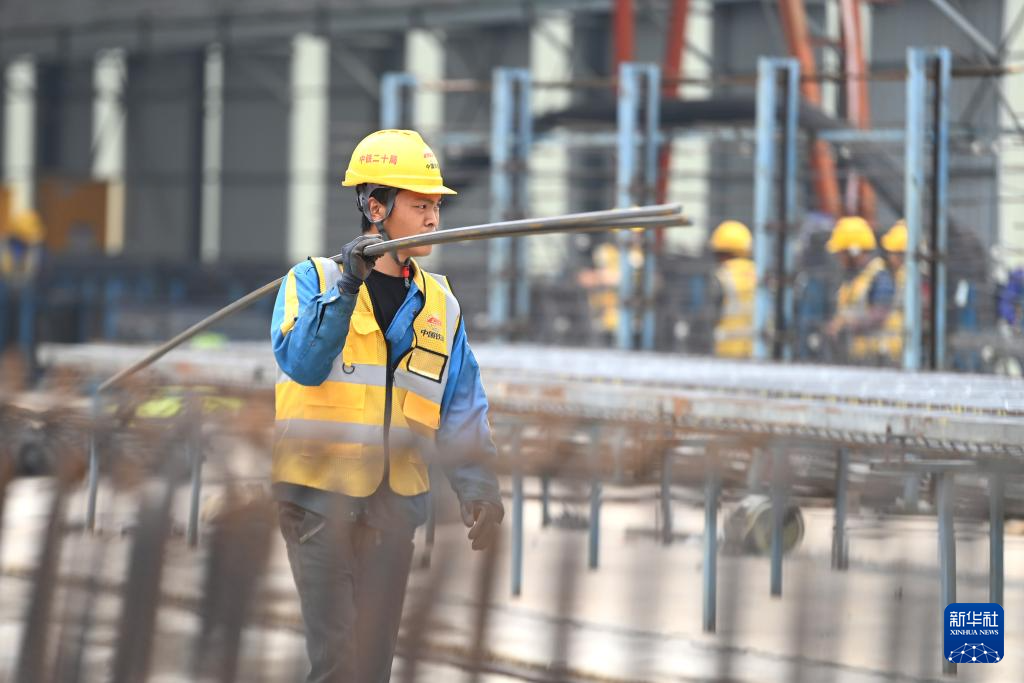 12月23日,中铁二十局的工人在柳州市柳江区三都镇鱼宜高速公路建设工地作业。新华社记者 黄孝邦 摄