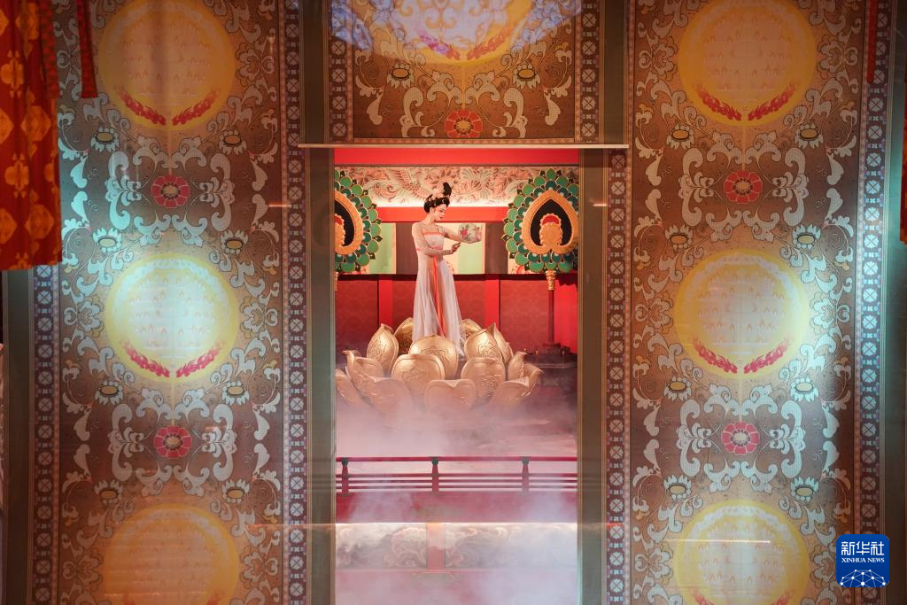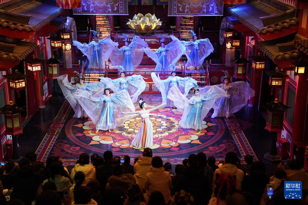 12月23日,演员在街区内表演大唐乐舞《霓裳羽衣舞》。新华社记者 邵瑞 摄