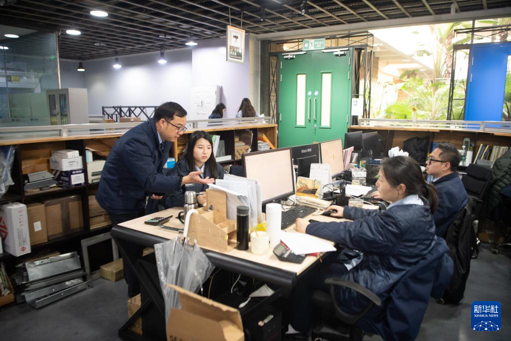 12月10日,唐和霞(左)在技术部门与同事沟通海外客户的定制需求。新华社记者 唐奕 摄