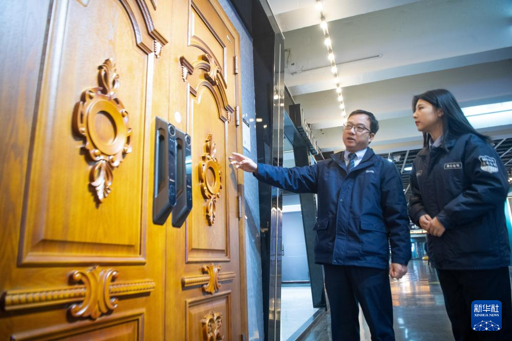 12月10日,唐和霞(右)在生产车间查看产品的生产情况。新华社记者 唐奕 摄