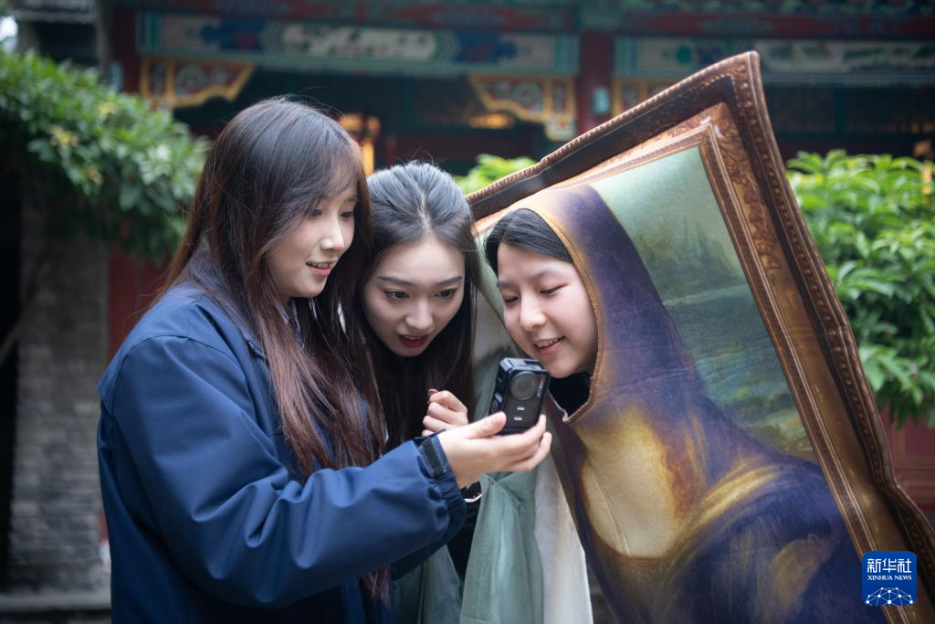12月10日,唐和霞(右)和文渝(中)拍摄创意短视频。新华社记者 唐奕 摄