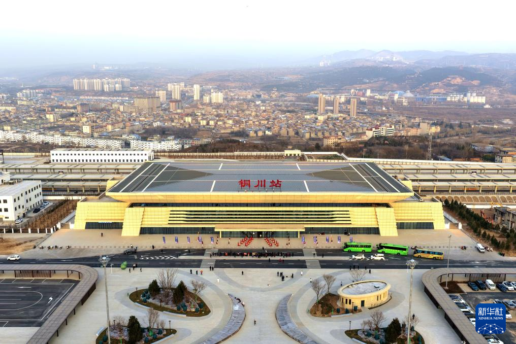 12月24日拍摄的西延高铁铜川站(无人机照片)。新华社记者 邢广利 摄