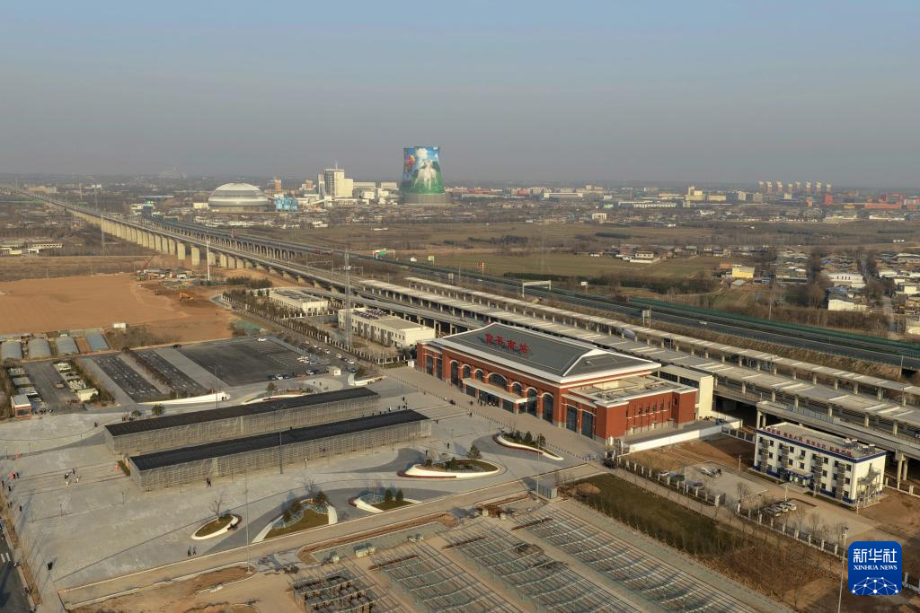 12月24日拍摄的西延高铁富平南站(无人机照片)。新华社记者 邢广利 摄