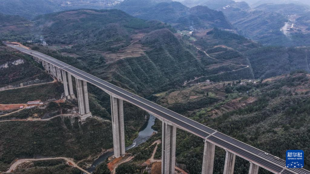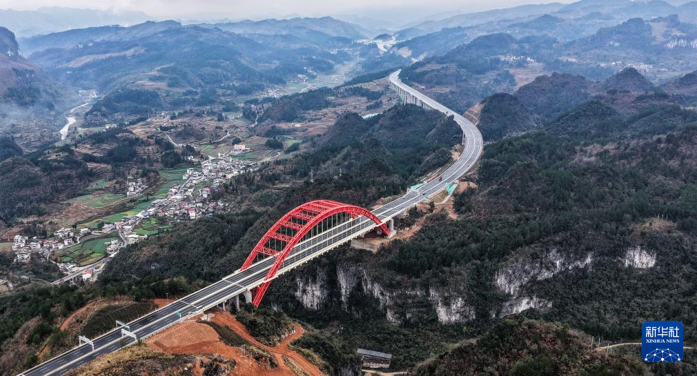 12月23日拍摄的贵平高速洛北河至沿山南路段(无人机照片)。新华社记者 陶亮 摄