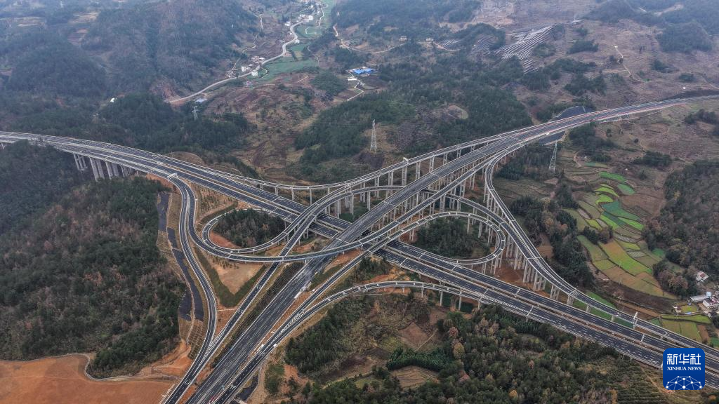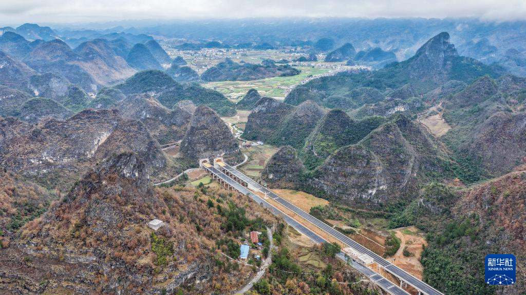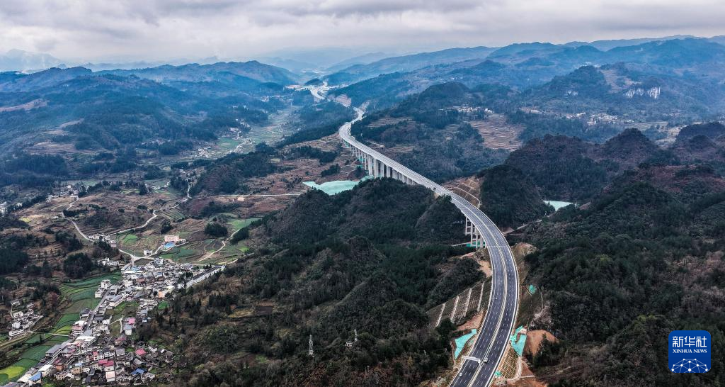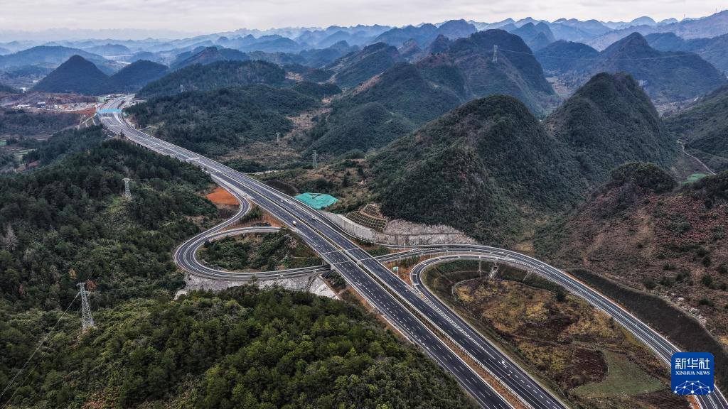 12月24日拍摄的贵平高速者密至云阳关路段(无人机照片)。新华社记者 陶亮 摄