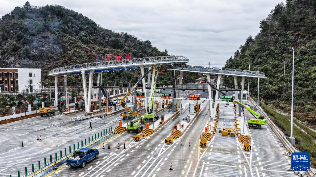 建设进入收尾阶段的平塘北收费站(12月23日摄,无人机照片)。新华社记者 陶亮 摄