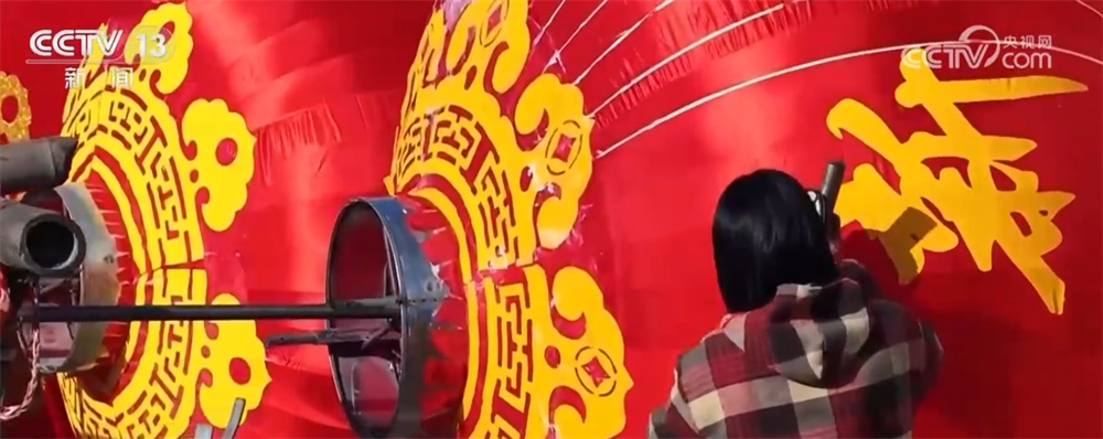 在红美宫灯厂的生产车间,灯笼真是节日的氛围担当,大红的灯笼高高悬挂,红红火火的喜庆氛围就有了。