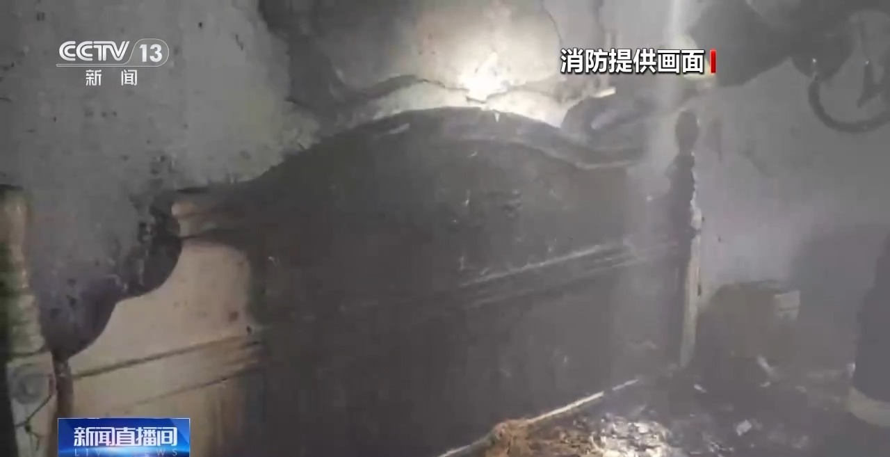 进入屋内后消防员发现,卧室的床垫正在燃烧,约一人高的火焰跳动蔓延形成了约两平方米的过火面,同时火势还在蔓延。消防员立即用水枪持续对火焰进行扑打。