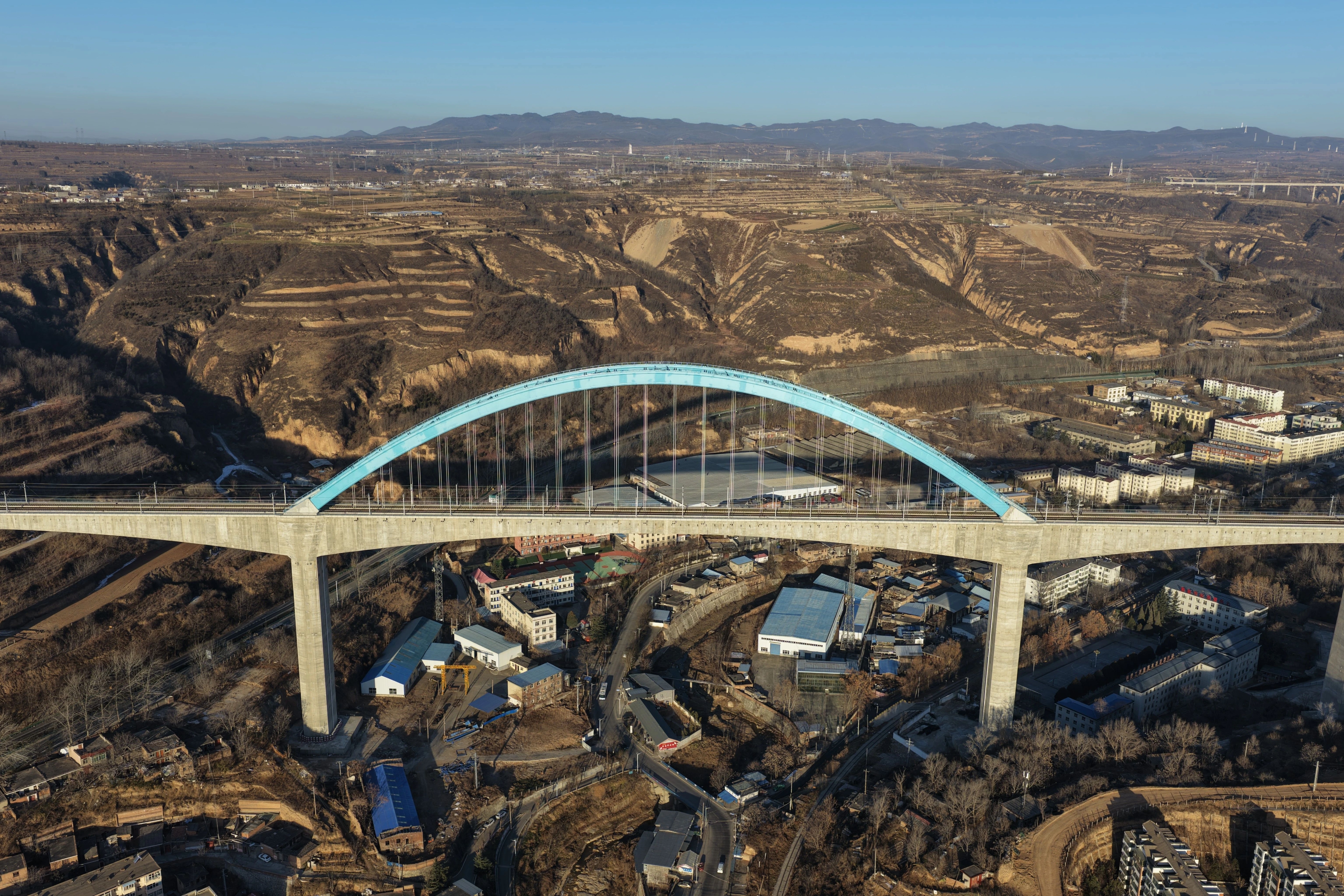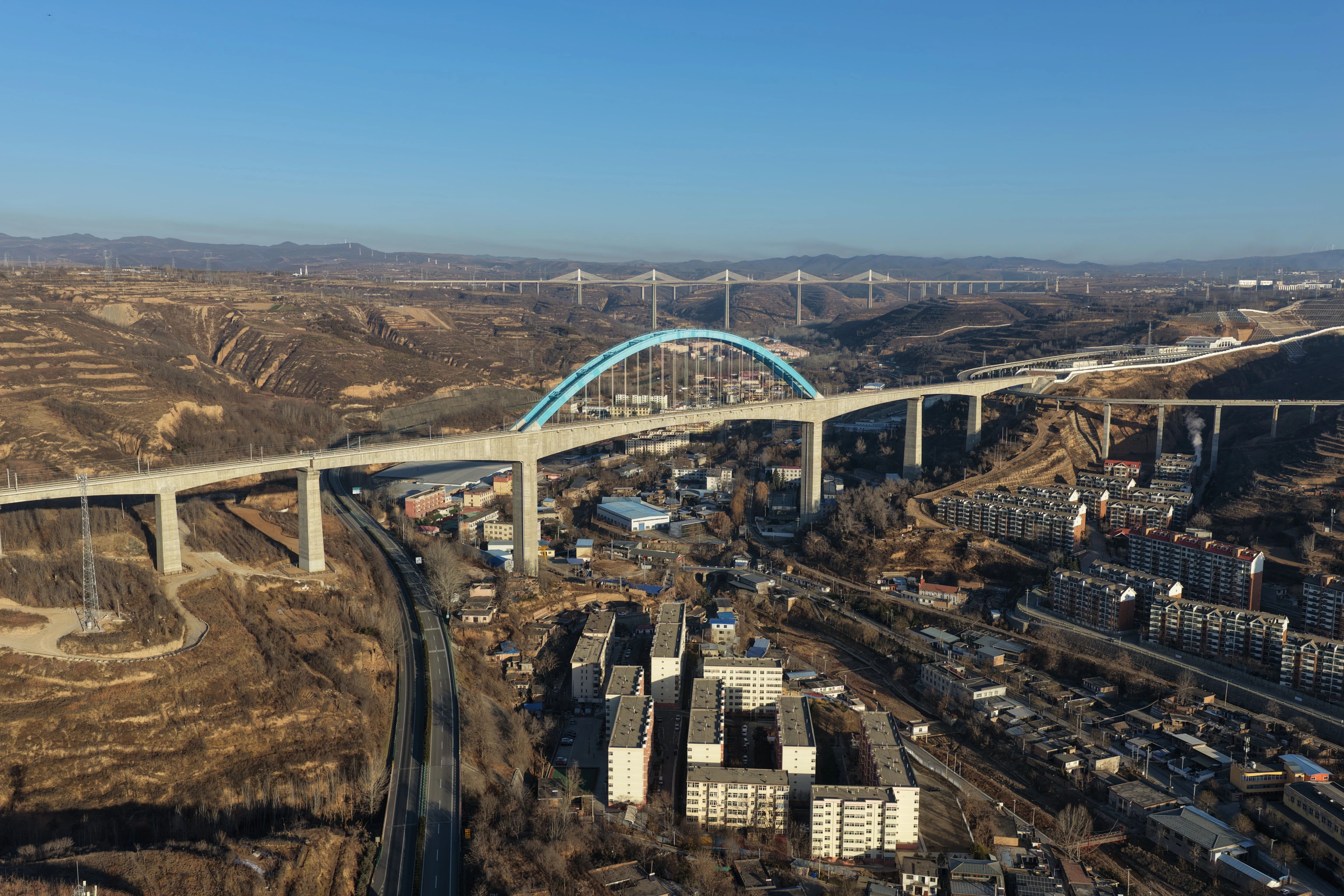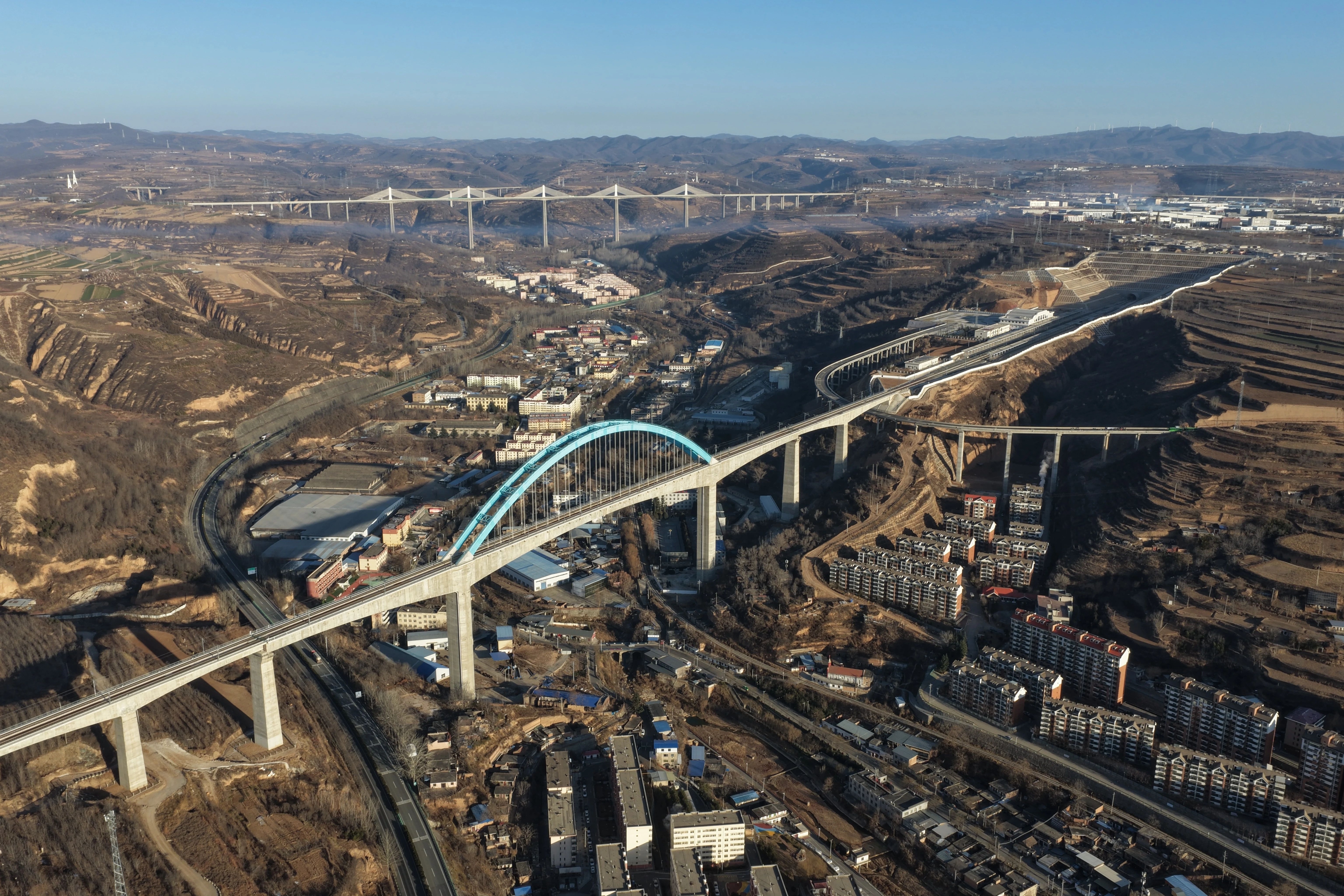 12月25日拍摄的西延高铁王家河特大桥(无人机照片)。新华社记者 邢广利 摄