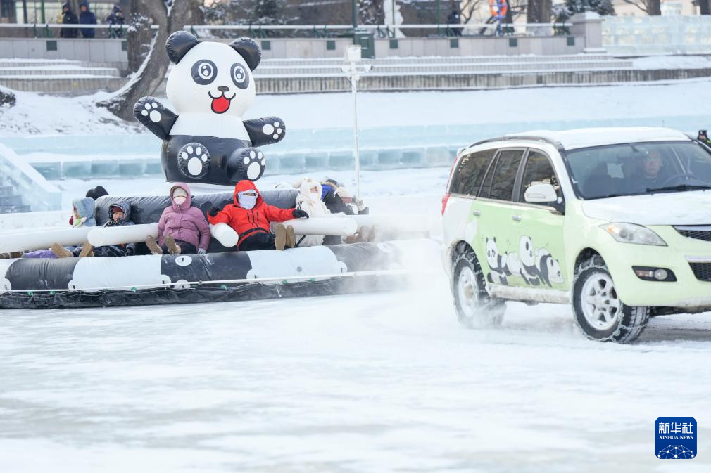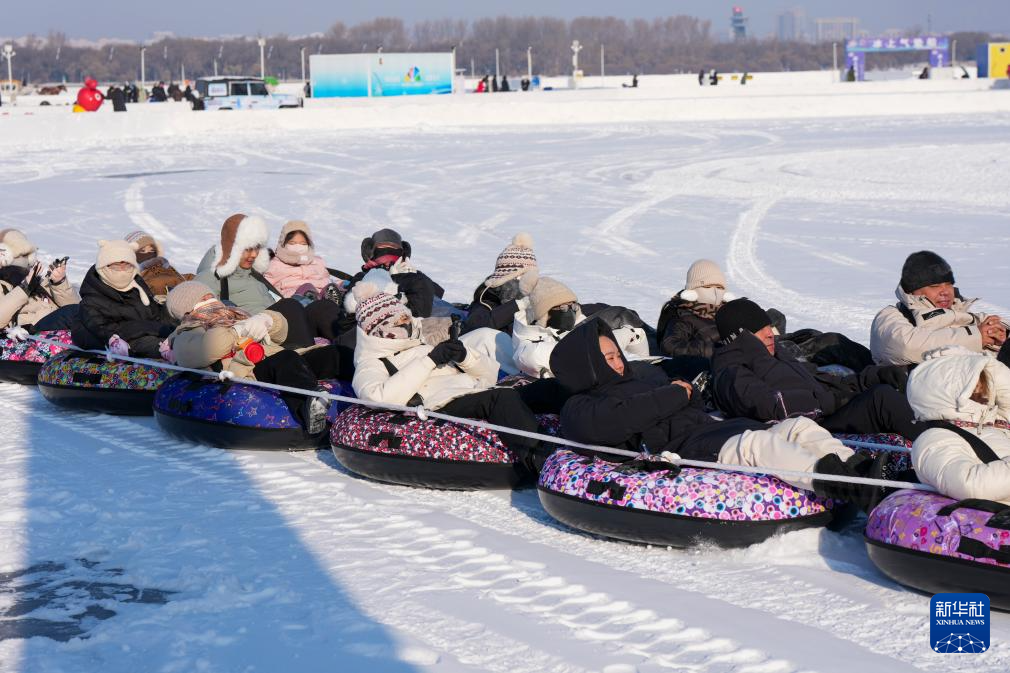 12月25日,人们在2026第八届哈尔滨松花江冰雪嘉年华园区内体验冰雪娱乐项目。新华社记者 王松 摄