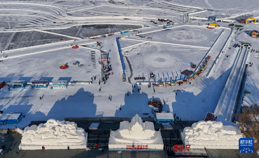 12月25日拍摄的2026第八届哈尔滨松花江冰雪嘉年华园区(无人机照片)。新华社记者 王松 摄