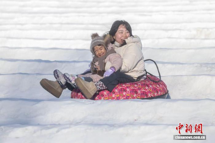 第十六届陶然亭冰雪嘉年华将于12月26日启幕。图为25日的媒体开放日活动上,游客在雪场游玩。中新社记者 易海菲 摄
