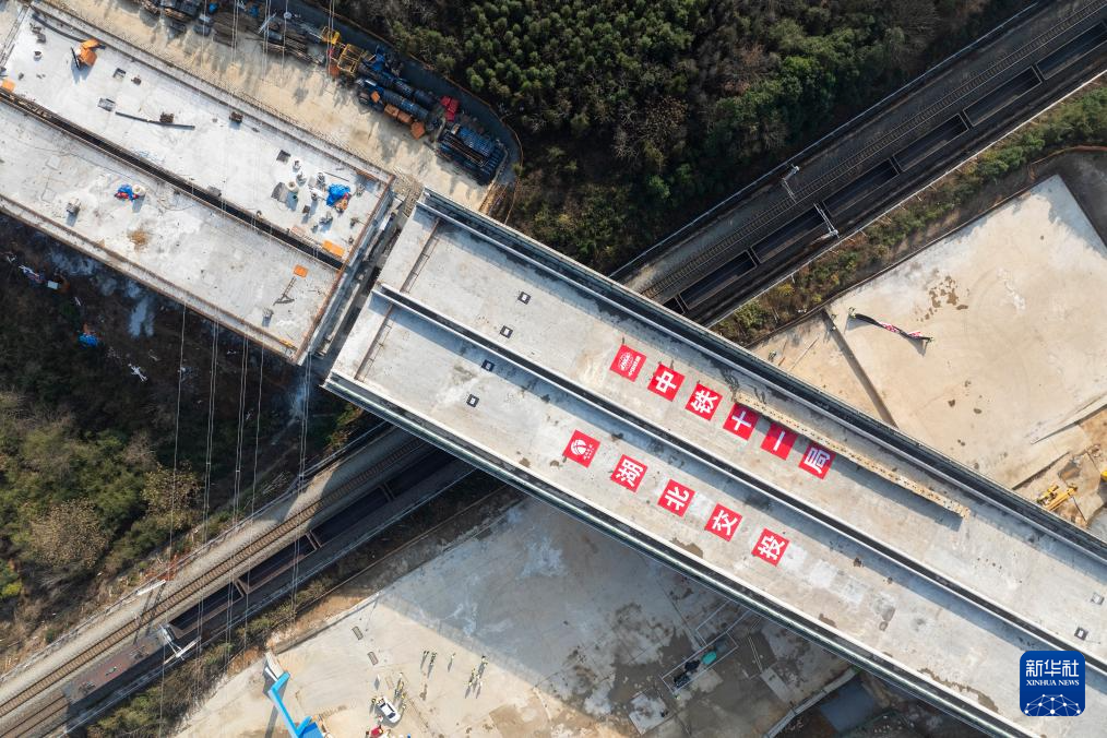12月25日,由湖北交投集团投资建设、中铁十一局承建的咸宁桂花至汀泗高速公路与京广铁路交叉工程转体桥顺利完成转体。
