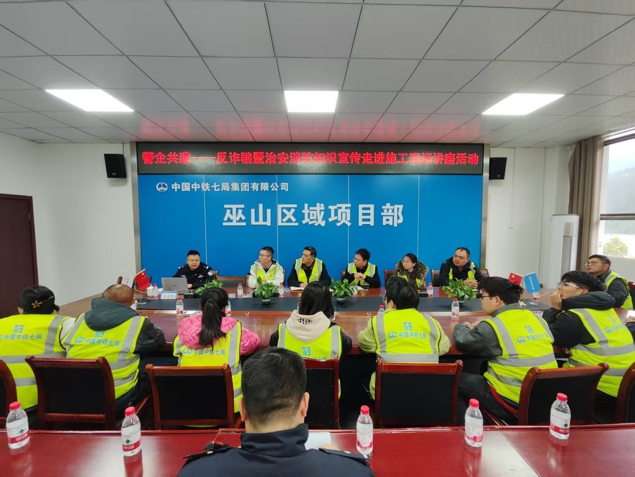 为进一步提升工程项目部管理人员、劳务工的反电诈意识和治安消防意识,提升员工反电诈和治安消防技能。12月24日,中铁七局巫山区域项目部联合巫山县龙门街道派出所开展以“反电诈暨治安消防知识讲座走进施工现场”为主题的警企共建活动。