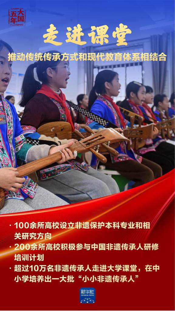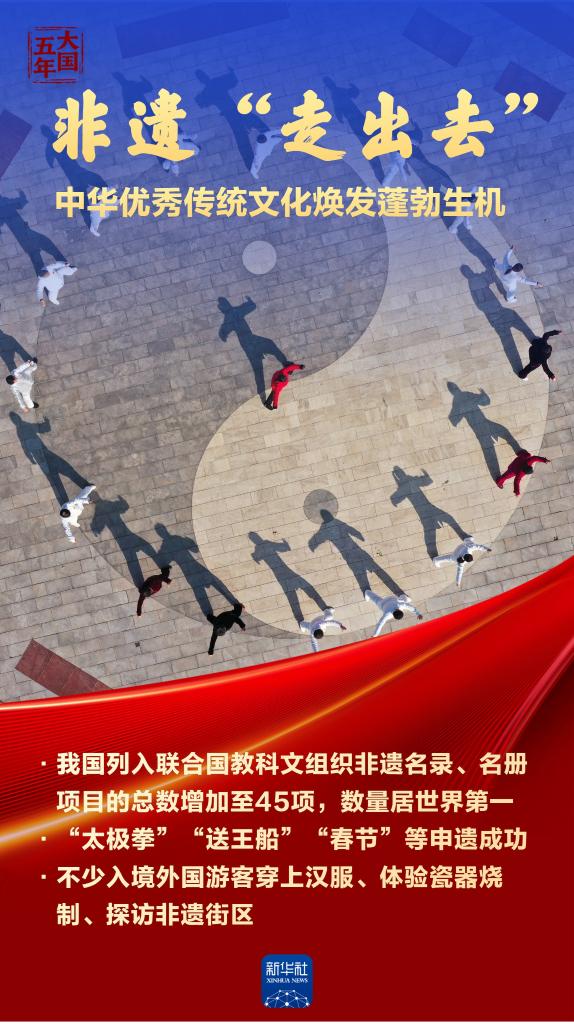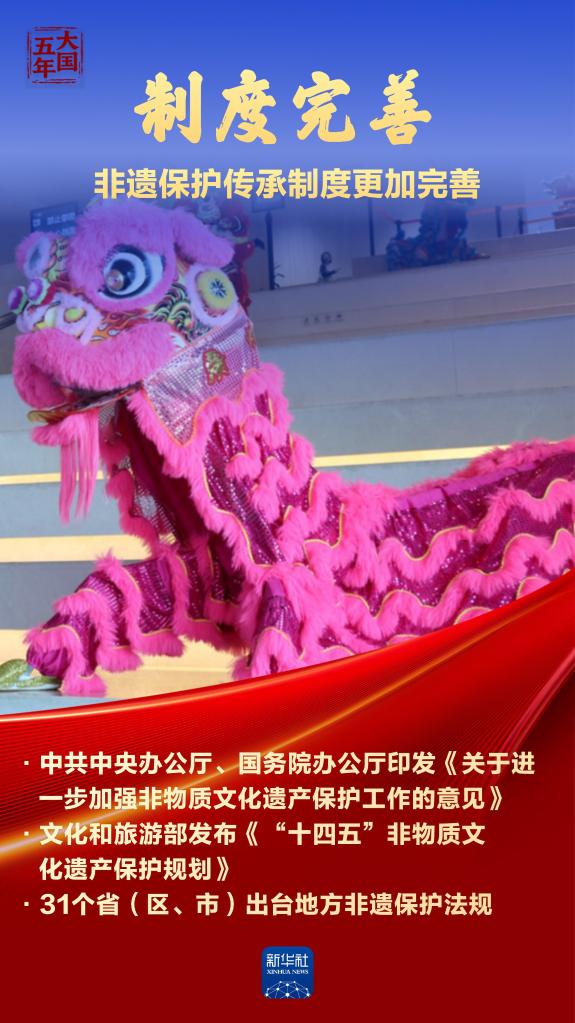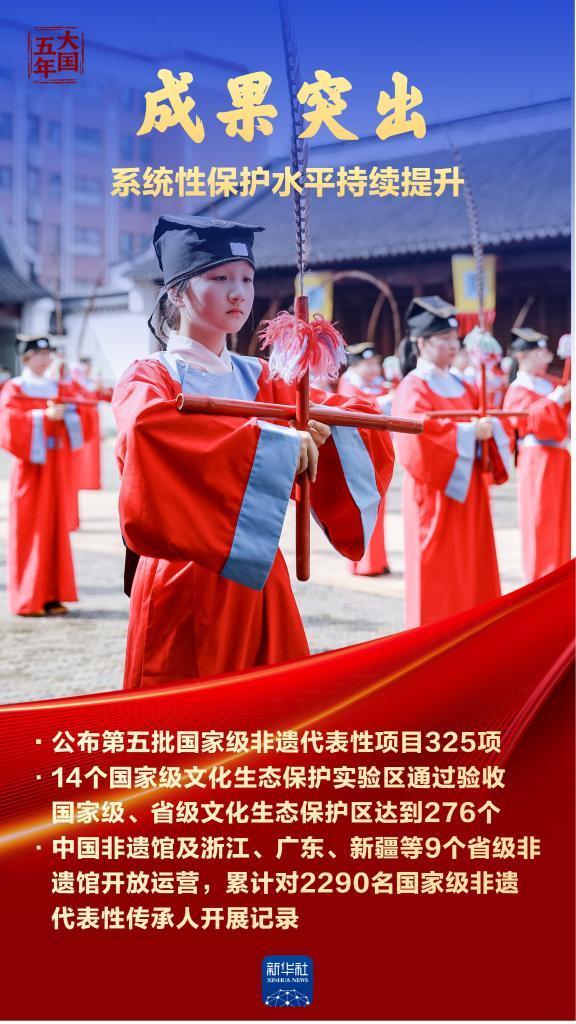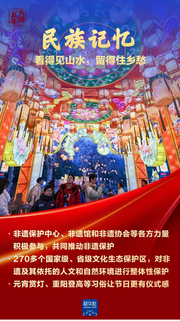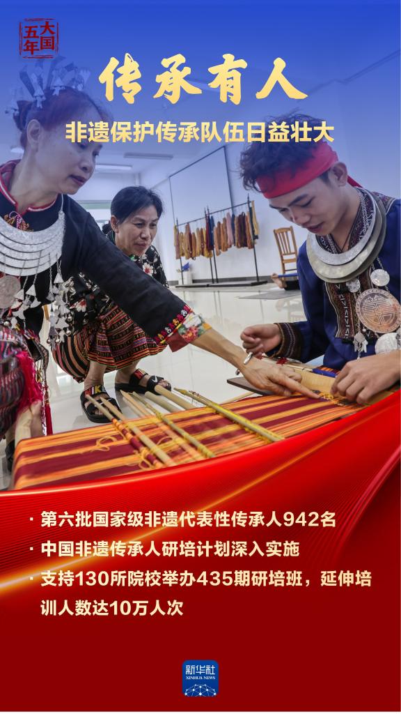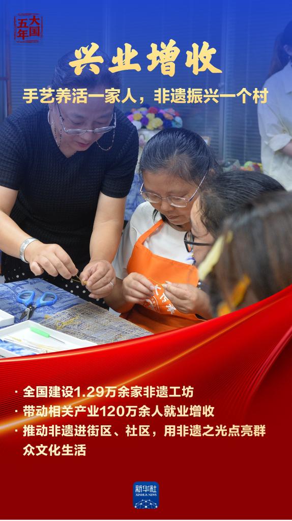非物质文化遗产是中华优秀传统文化的重要组成部分,是中华文明绵延传承的生动见证。“十四五”时期,我国非遗名录,名册项目世界第一,见证中华民族文明高度;超过1.29万家非遗工坊带动120余万人就业,古老技艺赋能乡村振兴;276个文化生态保护区存续乡土记忆,望得见山水,留得住乡愁。