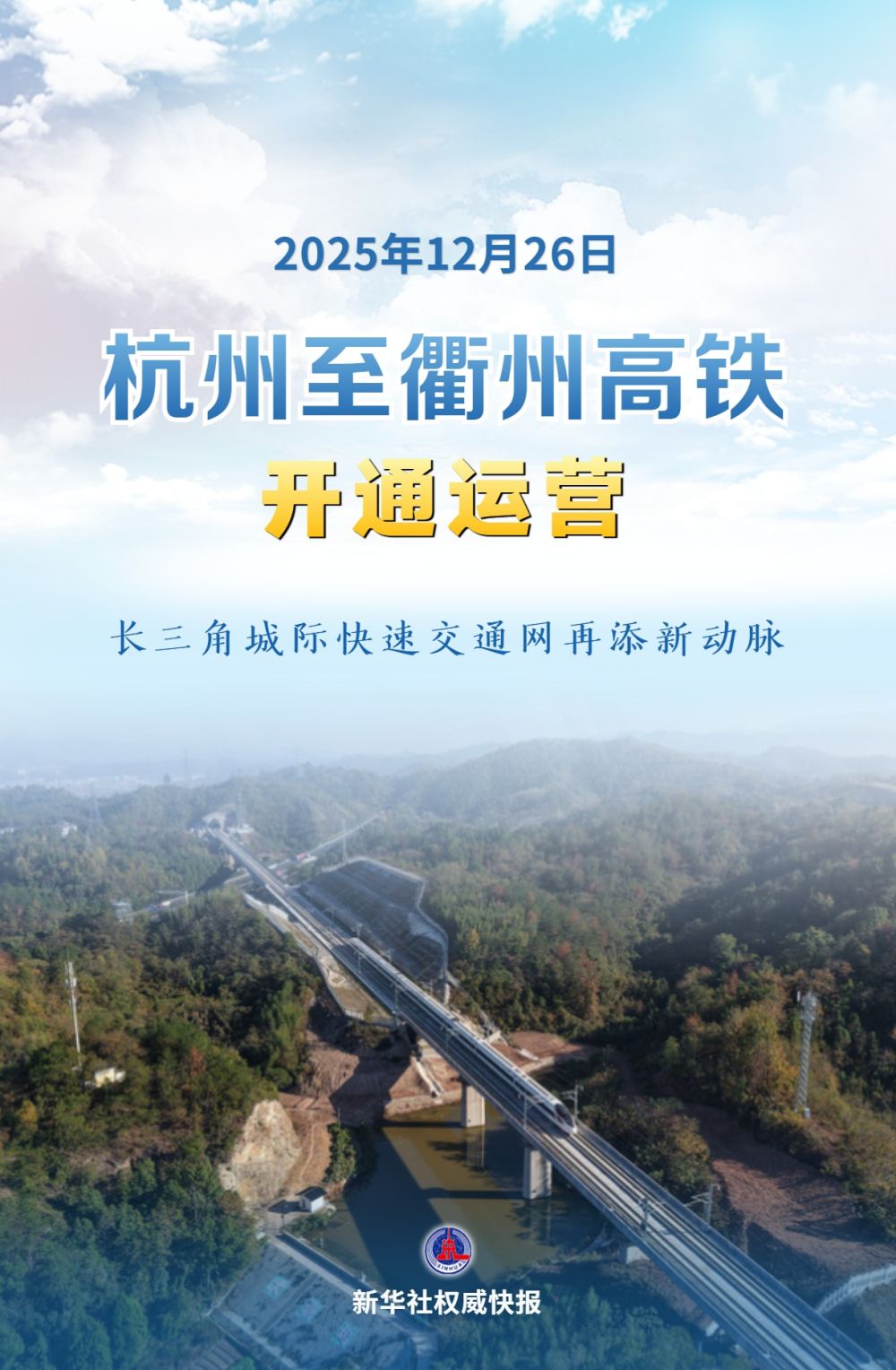 12月26日9时许,首趟始发列车C3132次从衢州西站开出,沿着新建杭州至衢州高速铁路驶向杭州方向,标志着杭衢高铁正式开通运营,长三角城际快速交通网再添新动脉。